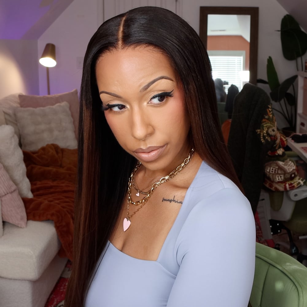 Klaiyi Ombre Chestnut Brown and Balayage Highlight Yaki Straight Put On and Go Glue